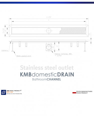 Kanał doskonale sprawdza się jako odpływ prysznicowy oraz kanał odwadniający całą łazienkę. Materiał wykonania to stal nierdzewna AISI 304. Możliwość wykonania także ze stali kwasoodpornej AISI 316 na specjalne zamówienie.W razie wątpliwości co do potrzeby wykonania produktu z kwasoodpornej stali nierdzewnej AISI 316