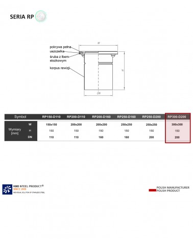 Rewizja płytowa o nazwie RP-300-D200 to idealnie dopasowane rozwiązanie rewizyjne. Cena rewizji zawiera akcesoria: płytę - 1 do wyboru, śruby, uszczelka.