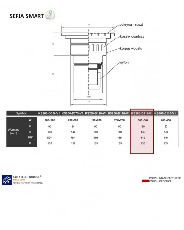 SMART KS300-D110-V1- Kratka ściekowa