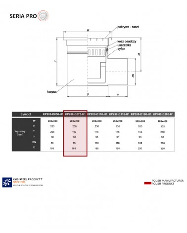 Wpust podłogowy PRO o nazwie KP200-DN075-H1 to profesjonalne rozwiązanie PRO. Cena wpustu zawiera akcesoria: ruszt, kosz osadczy, syfon.